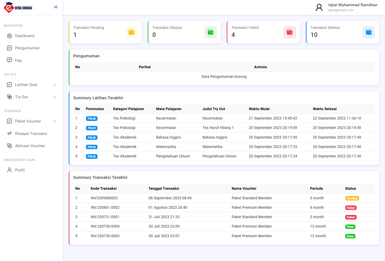 Citra Edukasi merupakan sistem CAT yang bertujuan Membantu casis POLRI, TNI, CPNS dan Kedinasan dalam berlatih agar lebih siap menghadapi tes yang sebenarnya
